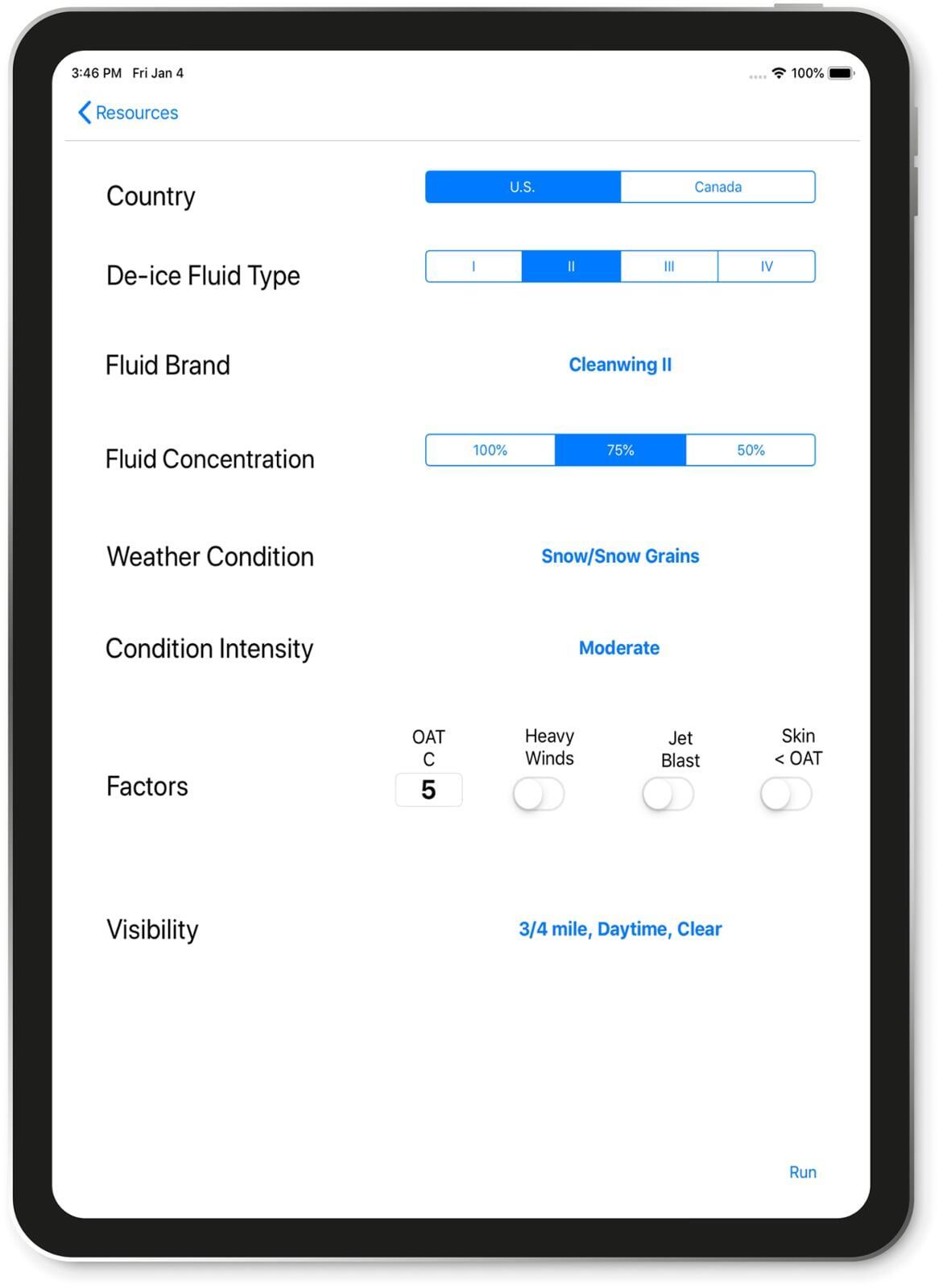 • Deice Hold Over Time calculator and timer based on Types I-IV fluids.