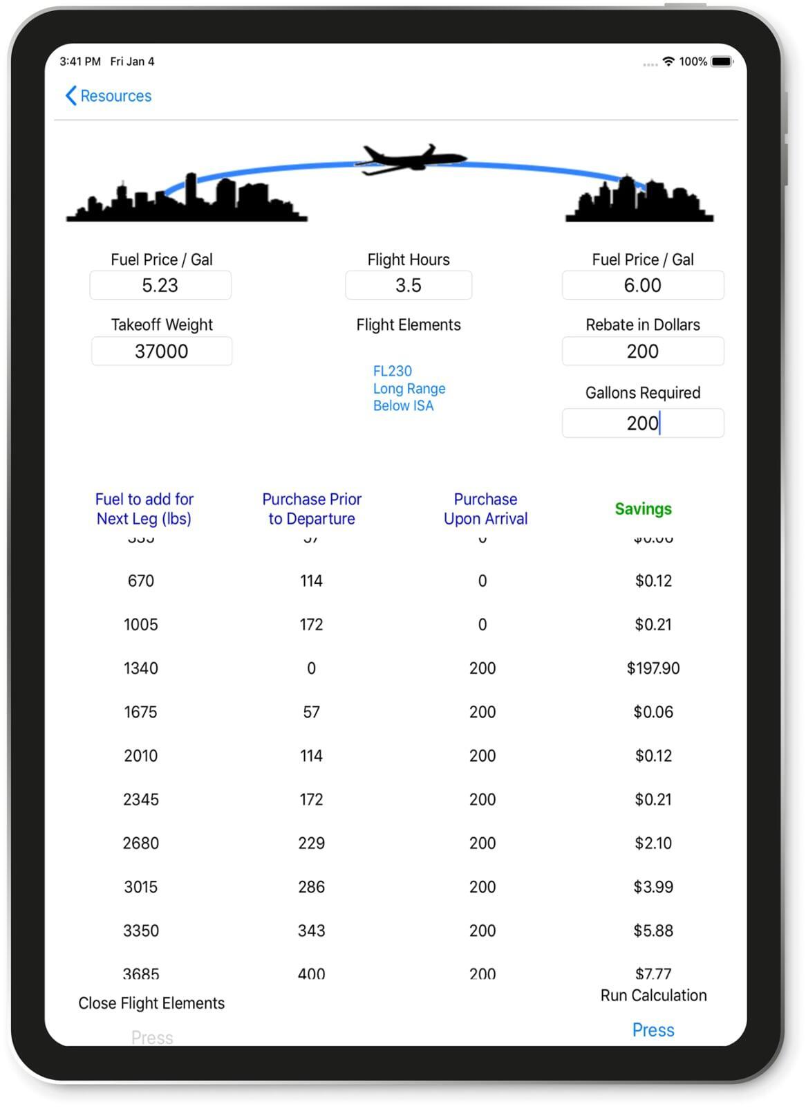 EFB-Pro is a self-contained Runway Analysis/Climb Gradient calculator, which does not require an internet connection to perform critical takeoff and landing calculations.